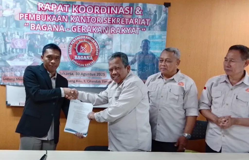 Badan Penanggulangan Bencana Gerakan Rakyat (BAGANA GR) menggelar rapat koordinasi, sekaligus pembukaan kantor sekertariat, Sabtu, 30 Agustus 2025 di Gedung